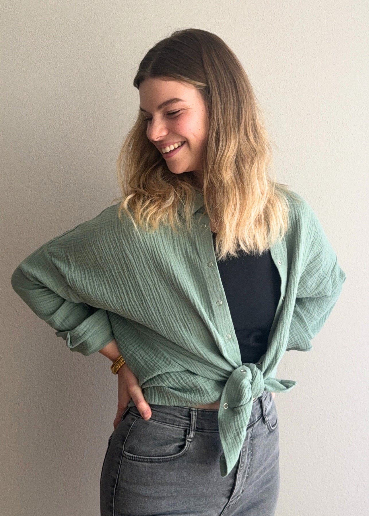 Der strukturierte Baumwollstoff unserer Musselin Blusen hat eine besondere temperaturausgleichende Wirkung und liegt angenehm auf der Haut. Das Wunderbare an Blusen aus Musselin ist, dass sie sich durch ihre natürliche Stoffstruktur gleichzeitig kuschelig weich und locker luftig anfühlen. Dieses Tragegefühl vereint Leichtigkeit mit femininem Charme. Und dank der reinen, hochwertigen Baumwolle entsteht keine Falte. Du kannst ohne Bügeln in deine Musselin Bluse
