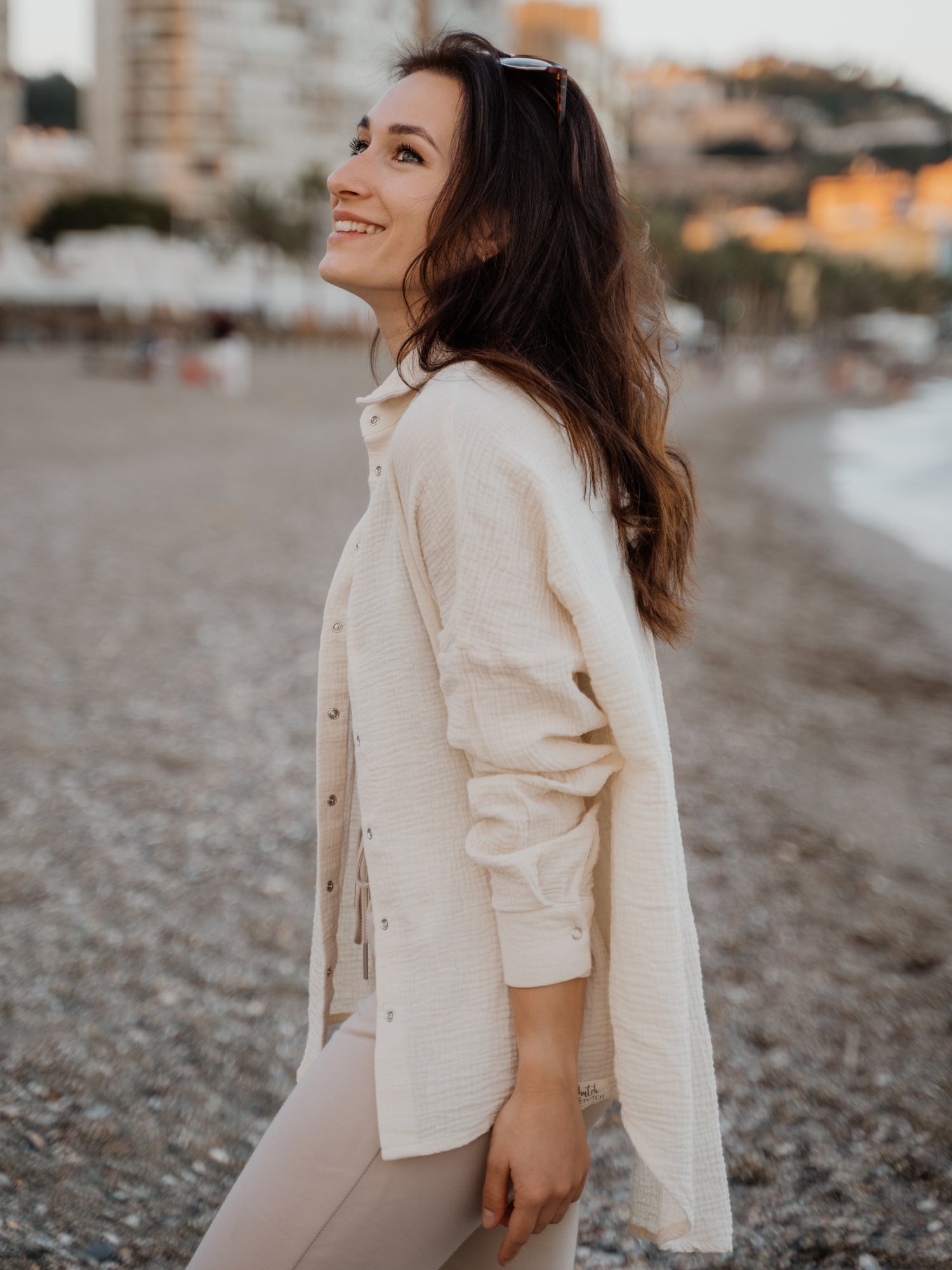 Miss Musselin® Blusen sind entspannte Sommergeschichten, die von der Küste inspiriert sind und mit ihrem gemütlichen Fit genauso gut zu Sonnen- wie zu kälteren Regentagen passen. Style deine Musselin Blusen mit Jeans oder Bikini, trag sie lässig oder elegant.