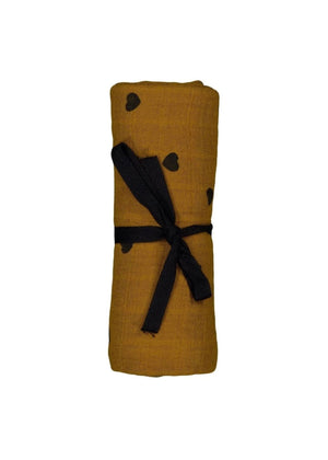 Le foulard en mousseline Bianca de Rose in April dans la couleur Camel associe un ton marron chaud à un design de petits cœurs fins en noir. Cette combinaison harmonieuse est à la fois ludique et élégante et ajoute une touche d'amour et de style à tous les looks - parfait pour toutes les saisons.