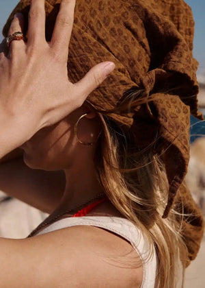 Le foulard en mousseline Bianca de Rose in April en camel avec un petit imprimé léopard combine une chaude couleur camel avec un motif léopard fin et discret. L'alliance harmonieuse du naturel et de l'imprimé animalier moderne confère au foulard une allure à la fois stylée et ludique. Un accessoire élégant qui apporte une touche subtile de chaleur et de caractère à tous les looks.