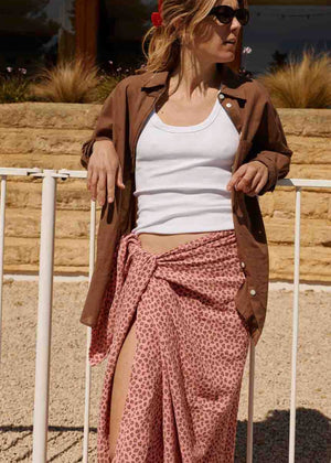 Avec ses dimensions de 105x170cm, le paréo en mousseline peut être porté de différentes manières. Noué nonchalamment autour de la taille, posé sur les épaules ou noué comme une robe de plage aérienne - un compagnon élégant qui allie le naturel et le confort de la plus belle des manières.