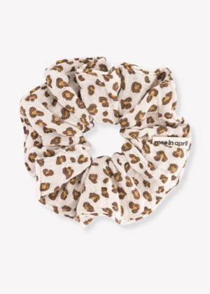 Lo scrunchie in mussola Chouchou di Rose in April combina funzionalità e stile in modo naturale. In un colore naturale con una stampa leopardata, è disponibile in una tonalità greige chiaro, un colore naturale morbido tra il beige e il bianco lana. La colorazione tenue in combinazione con il classico motivo leopardato conferisce all'accessorio per capelli un tocco moderno e giocoso, rendendolo un accento affascinante per qualsiasi abbigliamento.