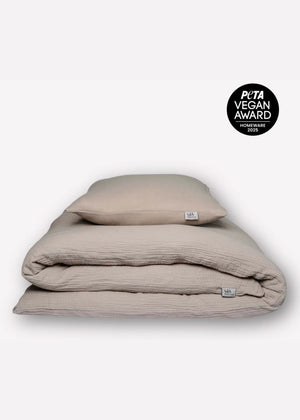Ausgezeichnet mit dem PETA Vegan Award 2025 überzeugt die Musselin Bettwäsche Eliane durch kompromisslose Nachhaltigkeit, faire Herstellung und ein rundum gutes Gefühl - ganz ohne tierische Bestandteile.