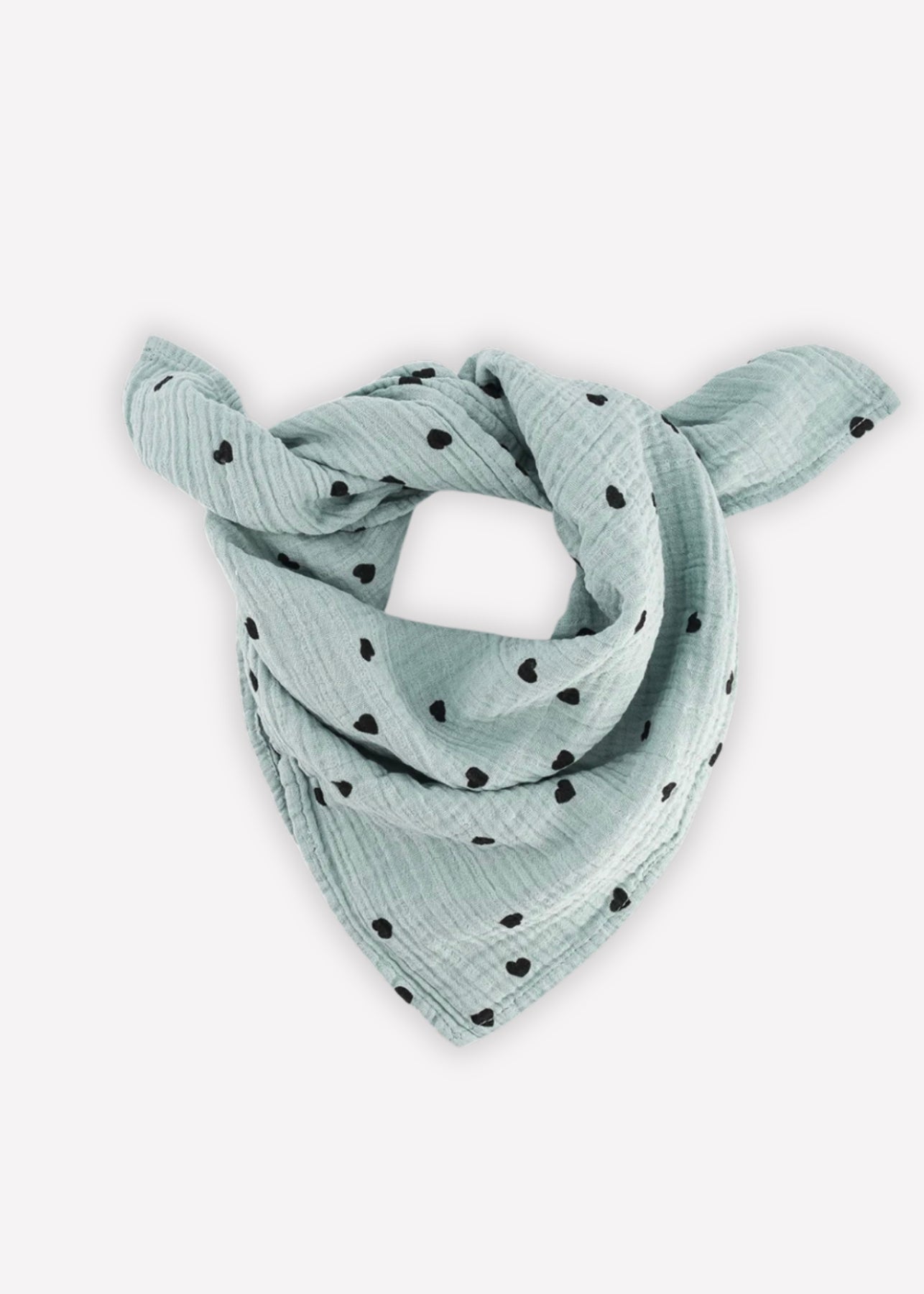 Das Musselin-Halstuch Bianca von Rose in April in Hellblau verbindet einen sanften Blauton mit einem zarten Herzchen-Design in Schwarz. Die Kombination wirkt frisch und zugleich verspielt und verleiht jedem Look eine liebevolle, stilvolle Note, perfekt für jede Jahreszeit.