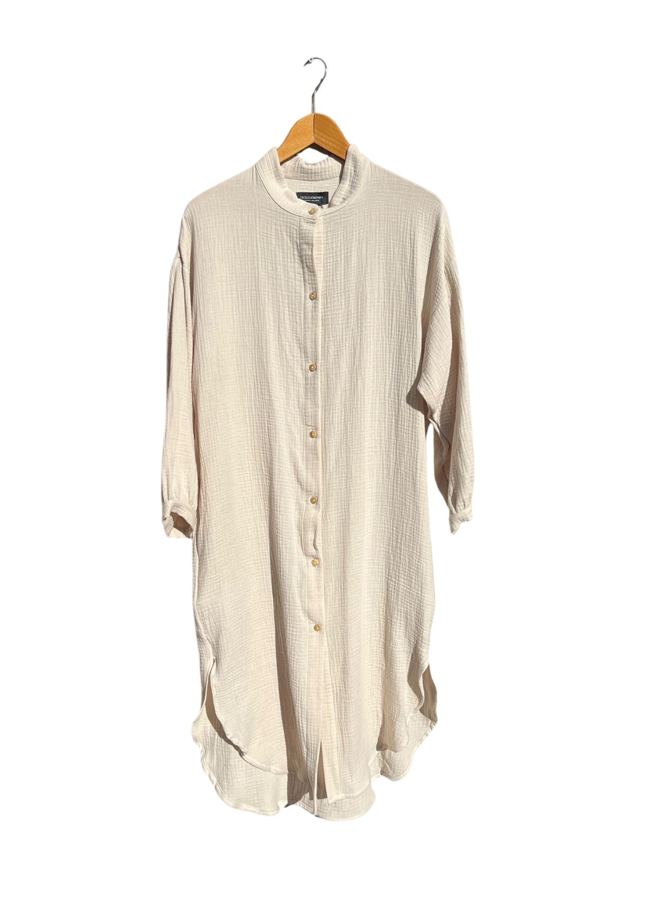 Das Musselin-Blusenkleid Cotoner von Cecilia Sörensen in Beige zeigt sich in einem warmen Naturton mit leicht sandigem Unterton - eine zeitlose Neutralfarbe, die Ruhe und Eleganz ausstrahlt. Der sanfte Farbton lässt sich vielseitig kombinieren und verleiht dem Kleid eine natürliche, schlichte Raffinesse. Ob solo getragen, mit ausgewählten Accessoires ergänzt oder im Layering gestylt, lässt es sich immer wieder neu interpretieren.