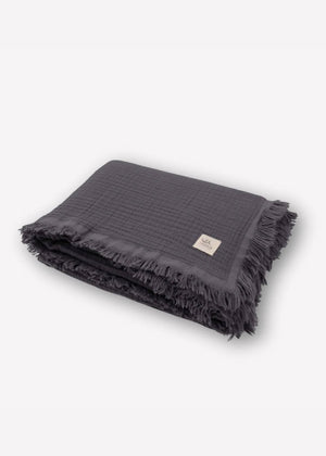 Die Musselin-Decke Daniela von hutch&PUTCH ist aus besonders weichem, vierlagigem Baumwollmusselin gefertigt und verbindet Leichtigkeit mit wohliger Wärme. In der Farbe Anthrazit, einem tiefen Dunkelgrau mit leichtem Schwarzanteil, wirkt sie edel, modern und zeitlos zugleich. Der ausdrucksstarke Farbton verleiht der Decke eine ruhige, elegante Präsenz und passt harmonisch zu hellen wie dunklen Wohnakzenten.