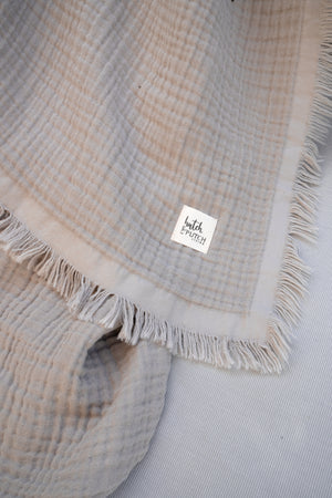 Die Musselin-Decke Daniela von hutch&PUTCH ist aus besonders weichem, vierlagigem Baumwollmusselin gefertigt und verbindet Leichtigkeit mit wohliger Wärme. In der Farbe Stone, einem dezenten Grau mit warmen Beigenuancen, wirkt sie ruhig, elegant und natürlich zugleich. Der neutrale Farbton fügt sich harmonisch in jedes Interieur ein und verleiht jedem Raum eine zeitlose, stilvolle Note.