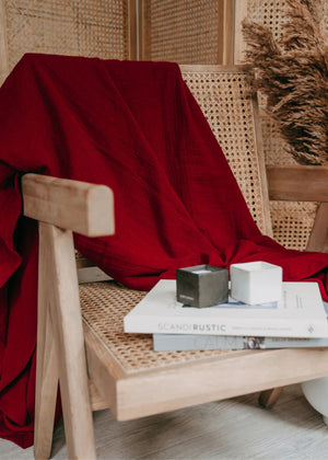 Die Musselin-Decke Josephin von hutch&PUTCH ist aus weichem Baumwollmusselin gefertigt und bringt natürliche Leichtigkeit in dein Zuhause. In der Farbe Cranberry, einem intensiven Rot mit leichtem Beerenton, wirkt sie warm, elegant und harmonisch. Das dunkle Rot setzt stilvolle Akzente, ohne aufdringlich zu wirken, und verleiht jedem Raum eine gemütliche, edle Atmosphäre.