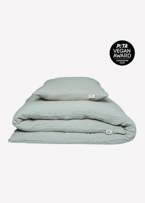 Ausgezeichnet mit dem PETA Vegan Award 2025 überzeugt die Musselin Bettwäsche Eliane durch kompromisslose Nachhaltigkeit, faire Herstellung und ein rundum gutes Gefühl - ganz ohne tierische Bestandteile.
