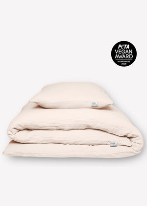 Ausgezeichnet mit dem PETA Vegan Award 2025 überzeugt die Musselin Bettwäsche Eliane durch kompromisslose Nachhaltigkeit, faire Herstellung und ein rundum gutes Gefühl - ganz ohne tierische Bestandteile.