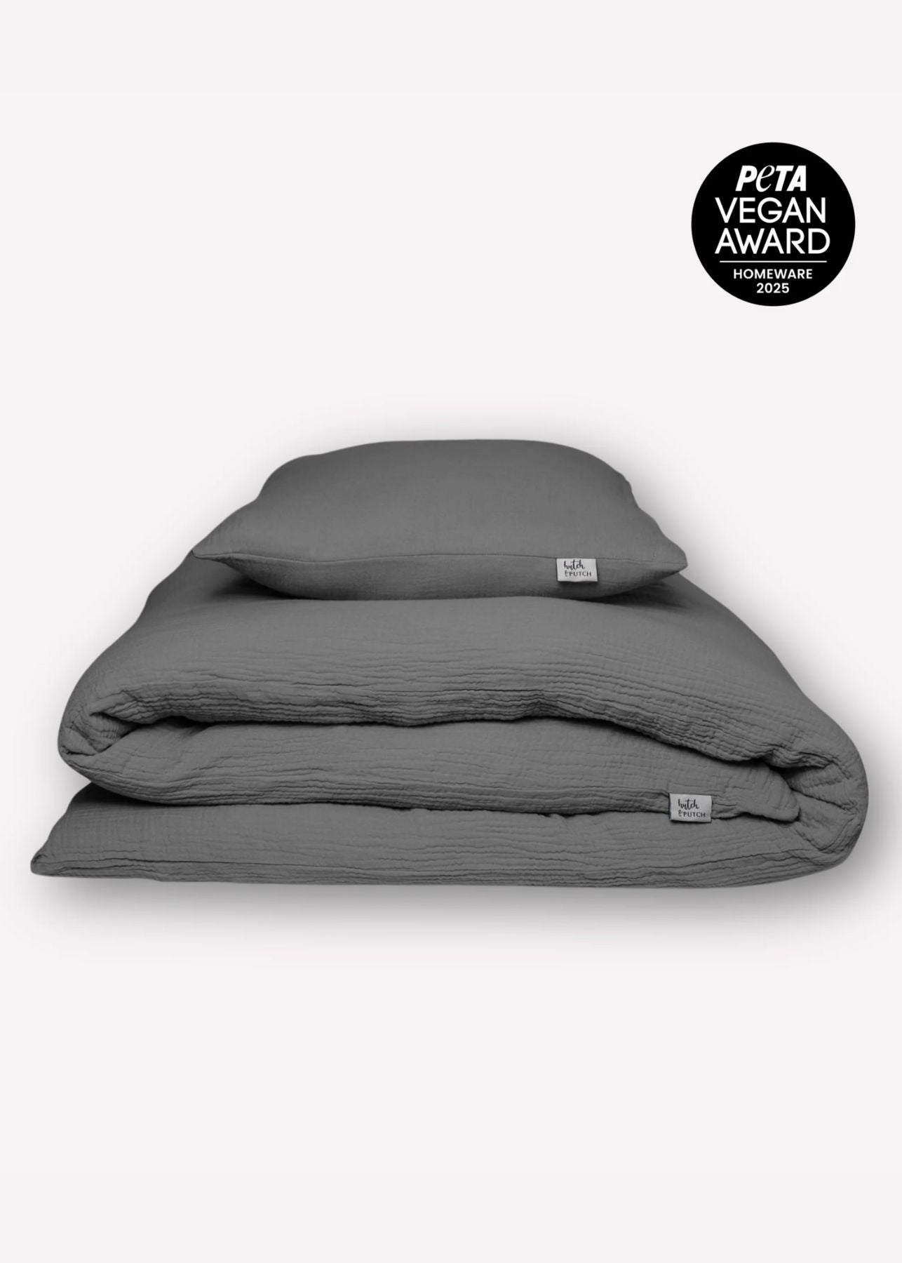 Ausgezeichnet mit dem PETA Vegan Award 2025 überzeugt die Musselin Bettwäsche Eliane durch kompromisslose Nachhaltigkeit, faire Herstellung und ein rundum gutes Gefühl - ganz ohne tierische Bestandteile.