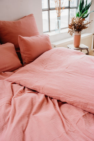Der Bio-Musselin-Duvetbezug Eliane von hutch&PUTCH in der Farbe altrosa bringt eine feminine, harmonische Note und spürbaren Komfort in dein Schlafzimmer. Der Farbton Altrosa, eine kräftige gebrochene Variante von Rosa mit romantischem Charakter, verleiht dem Duvetbezug eine warme, stilvolle Ausstrahlung - ideal für eine gemütliche Schlafumgebung mit besonderem Charme.
