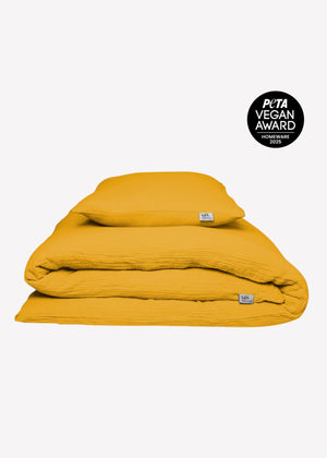Ausgezeichnet mit dem PETA Vegan Award 2025 überzeugt die Musselin Bettwäsche Eliane durch kompromisslose Nachhaltigkeit, faire Herstellung und ein rundum gutes Gefühl - ganz ohne tierische Bestandteile.