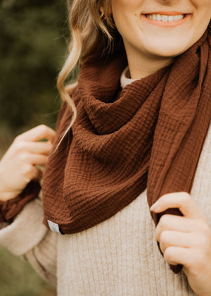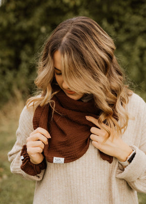 Ein Tuch – unendlich viele Möglichkeiten: Das Musselin-Halstuch Niva von hutch&PUTCH in der Farbe dunkelbraun ist ein vielseitiges Accessoire für deinen Alltag. Ob klassisch als Halstuch getragen, lässig als Musselintuch um die Schultern gelegt, stylish als Kopftuch oder gebunden an deiner Tasche - es verleiht jedem Look eine natürliche und entspannte Note.