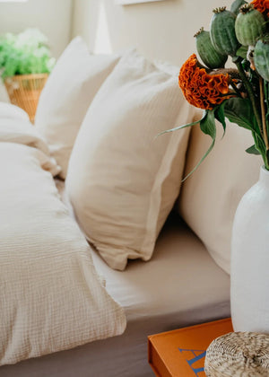 Die Musselin-Kissenbezüge ergänzen den gleichnamigen Musselin-Duvetbezug perfekt und schaffen so ein harmonisches Gesamtbild im Schlafzimmer.