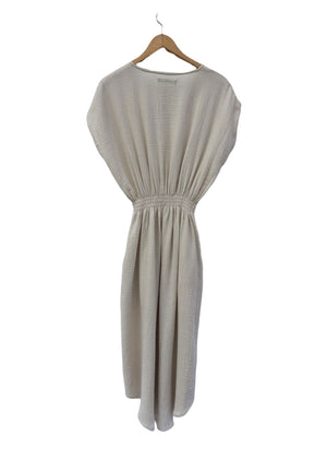 Das Musselin-Kleid Magnolia in Beige zeigt sich in einem warmen Naturton mit leicht sandigem Unterton. Die sanfte Nuance wirkt ruhig, elegant und vielseitig kombinierbar - eine harmonische Neutralfarbe, die zeitlose Schlichtheit mit natürlicher Wärme verbindet. Mit seinem fliessenden Schnitt eignet sich das Musselin Kleid perfekt zum Layern und begleitet dich stilvoll durch jede Jahreszeit.
