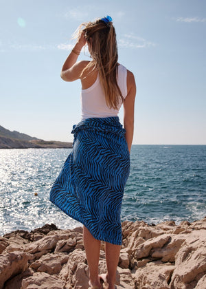 Der Musselin-Pareo Louisa in Royalblau begeistert mit einem intensiven Blauton, der Frische und Ausdruck verleiht. Das Zebra-Muster sorgt für einen modernen, lebendigen Kontrast und macht das Tuch zu einem echten Hingucker – ideal für sonnige Tage und Urlaubsstimmung.