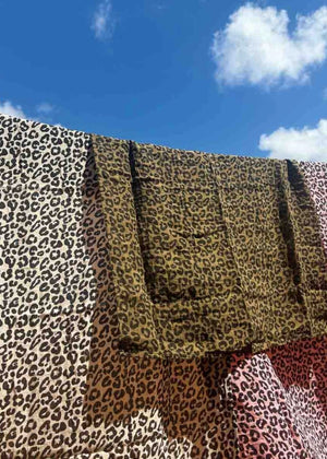 Der Musselin-Strandtuch Louisa in Oliv wirkt in einem warmen Grünton mit erdiger Nuance, der Ruhe und Natürlichkeit ausstrahlt. Der Leo-Print verleiht dem Tuch eine moderne, lebendige Note und macht es zu einem vielseitigen Begleiter für entspannte Sommertage.